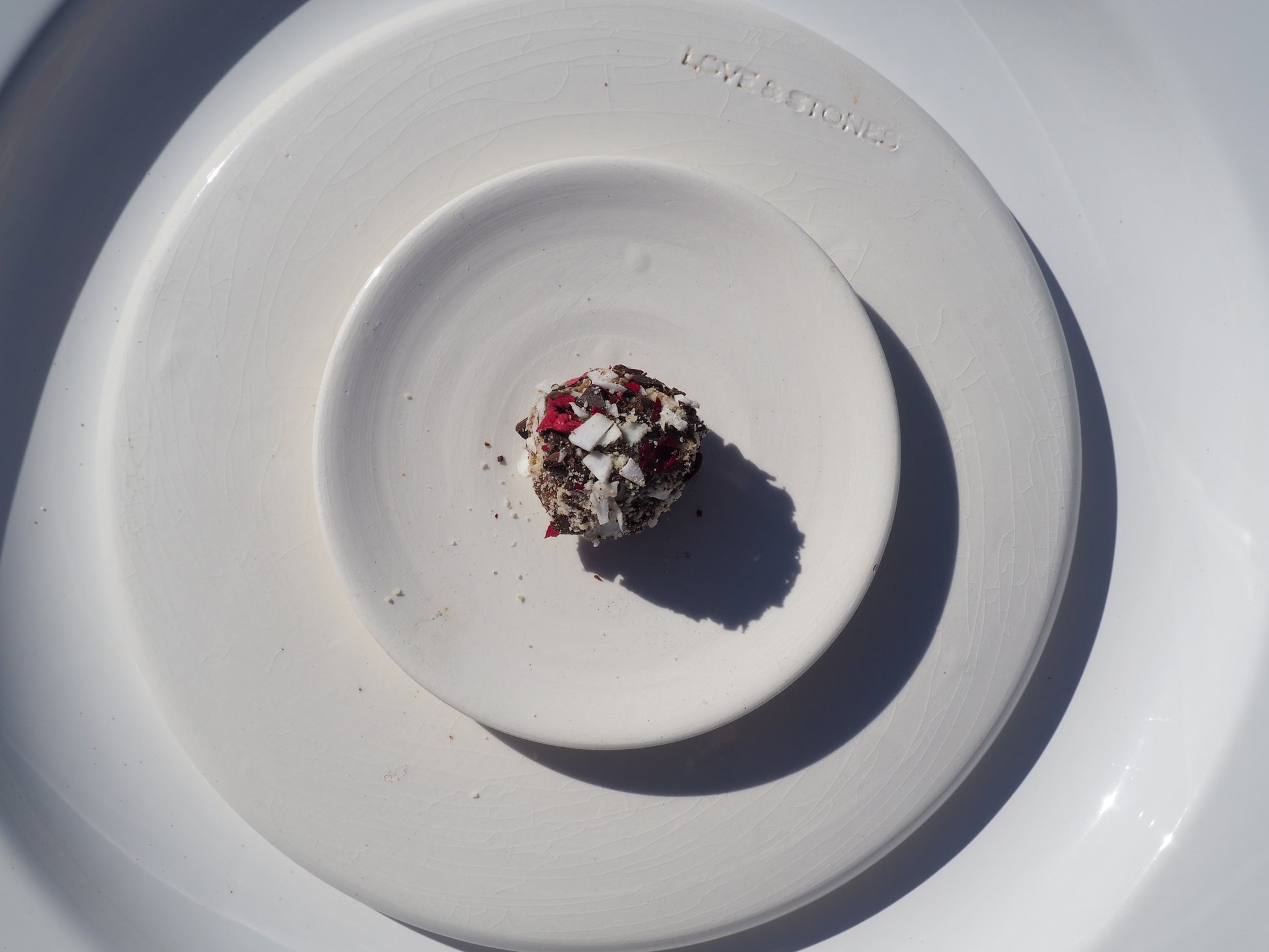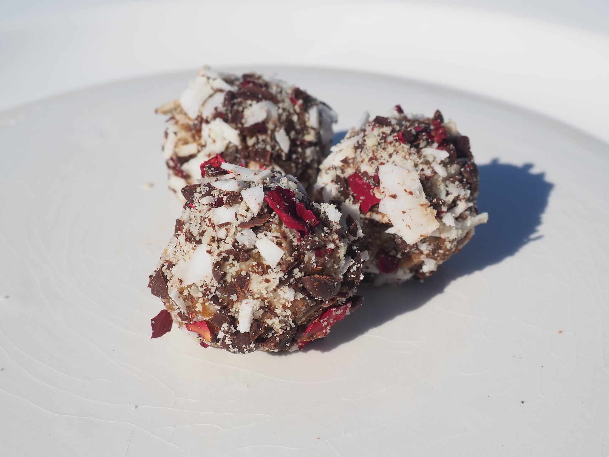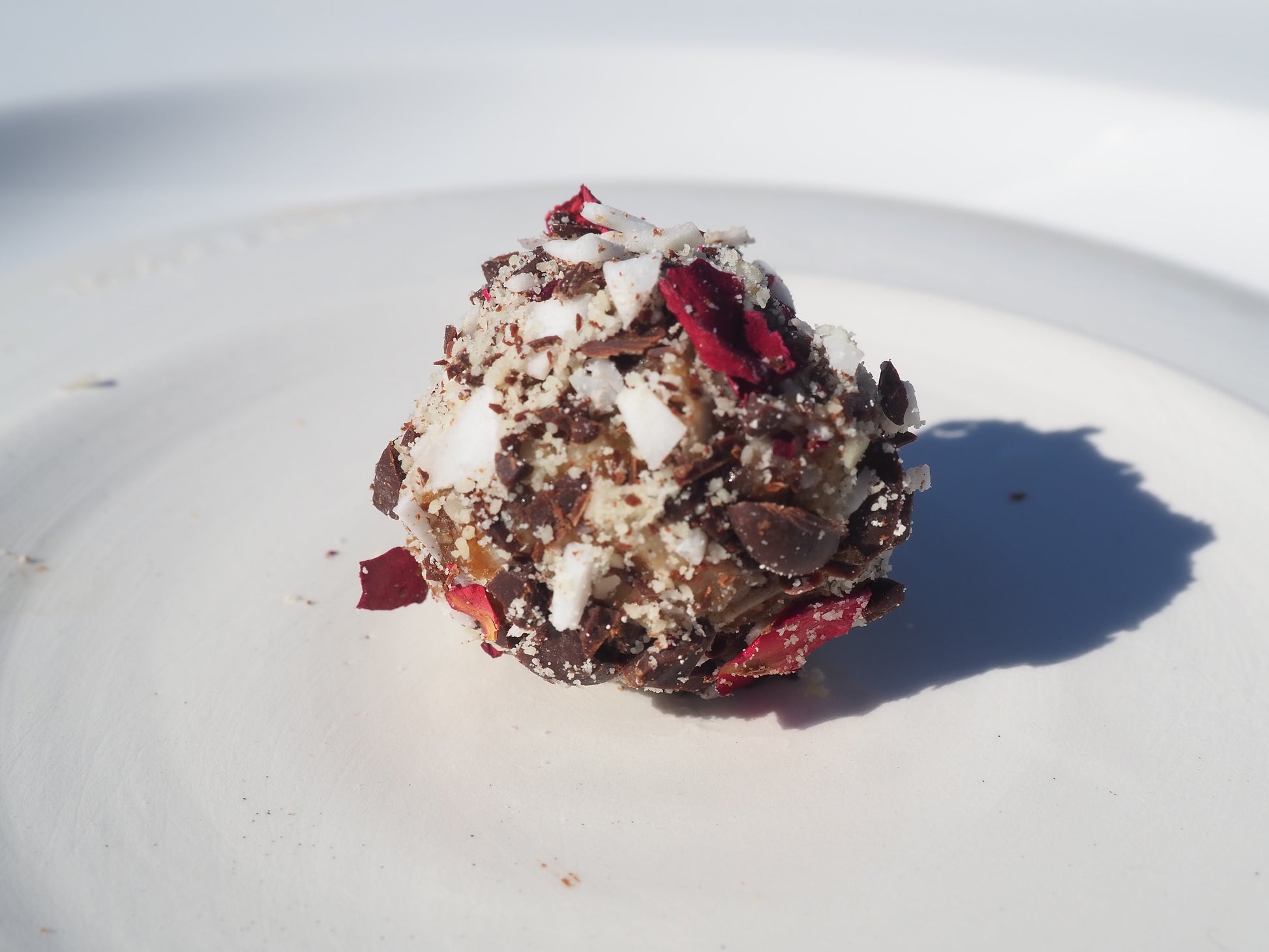HAPPINESS – a bite with shredded coconut, date, condensed milk & 70% dark chocolate and Lion`Mane